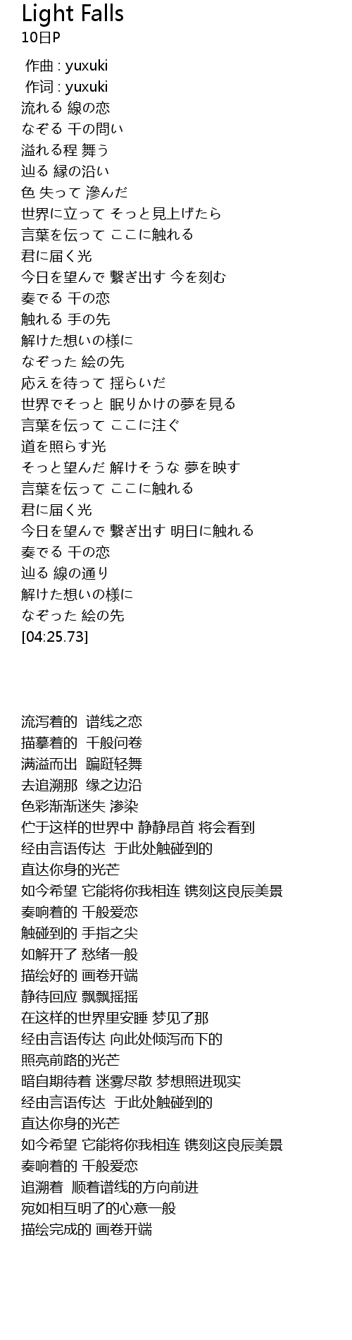 | 歌曲 | Light Falls |