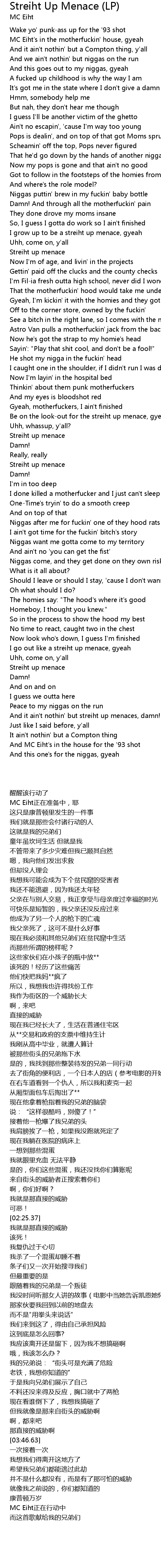 Be on the look-out for the streiht up menace, gyeah |