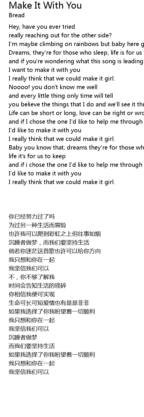 I really think that we could make it girl. |
