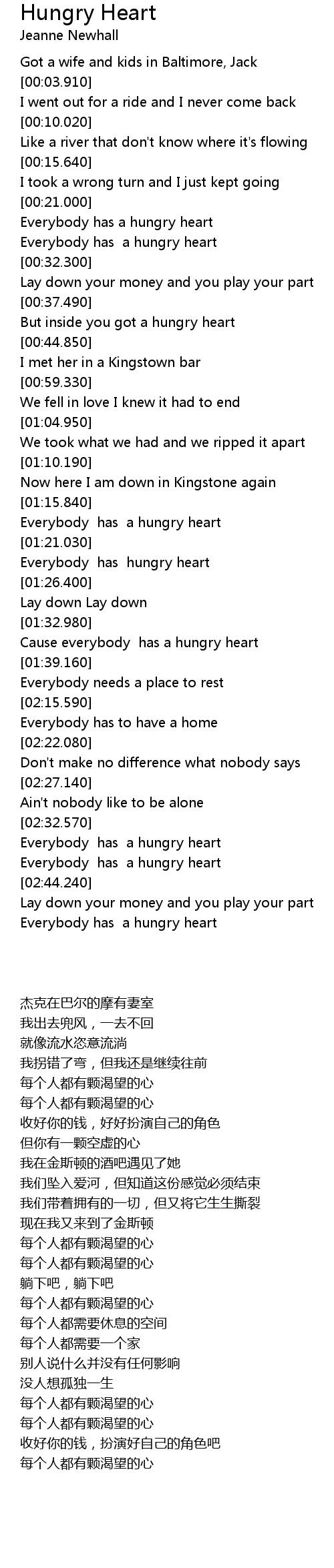 Cause everybody has a hungry heart |