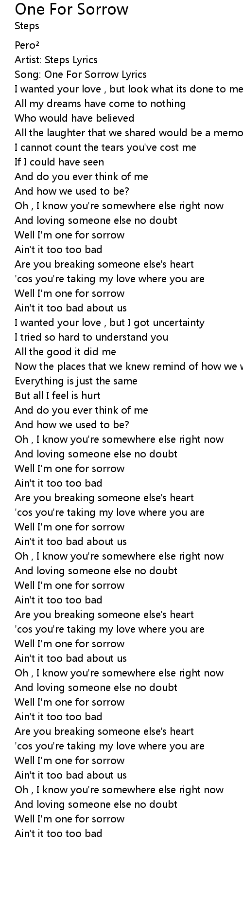 | [00:13.85] | Song: One For Sorrow Lyrics |