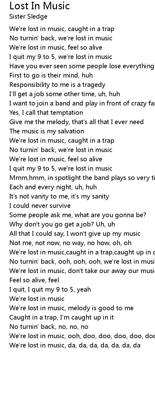 [03:28.45] We're lost in music, ooh, doo, doo, doo, doo, doo, doo, doo