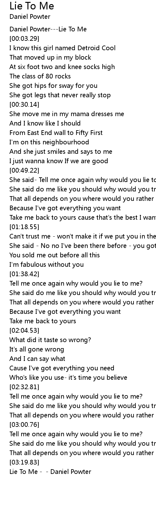 | [03:20.47] | Lie To Me--Daniel Powter |