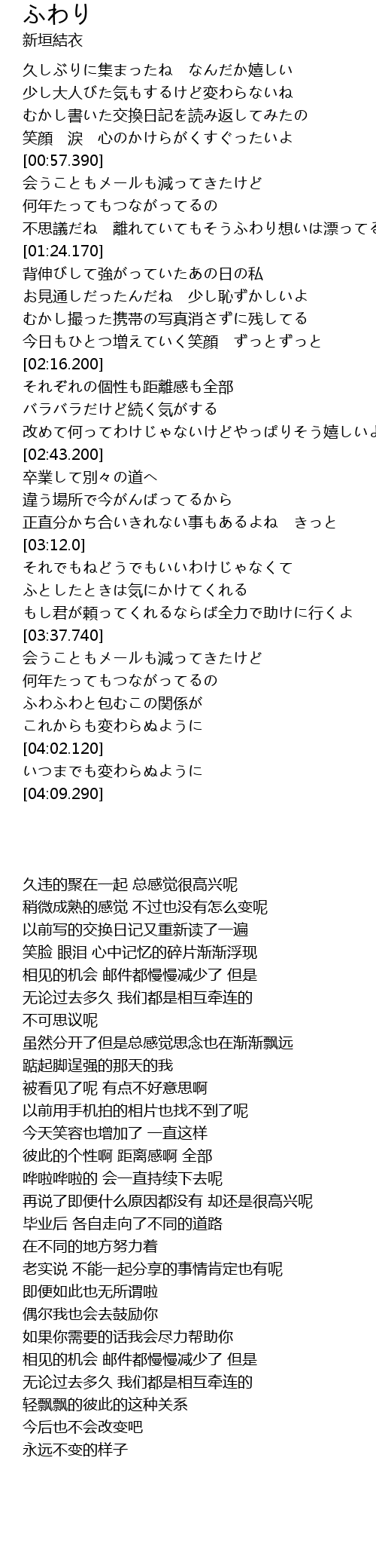 | [01:13.150] | 不可思议呢 虽然分开了但是总感觉思念也在渐渐飘远 |