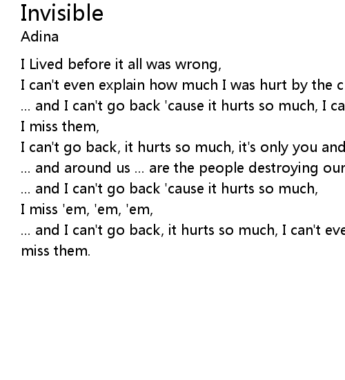 | ... and I can't go back 'cause it hurts so much, I can't even tell them how much I miss them, | |