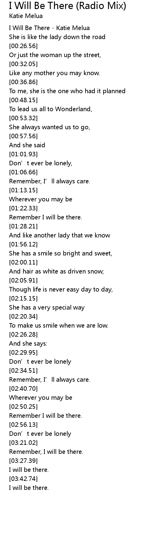 | [01:23.64] | Remember I will be there. |