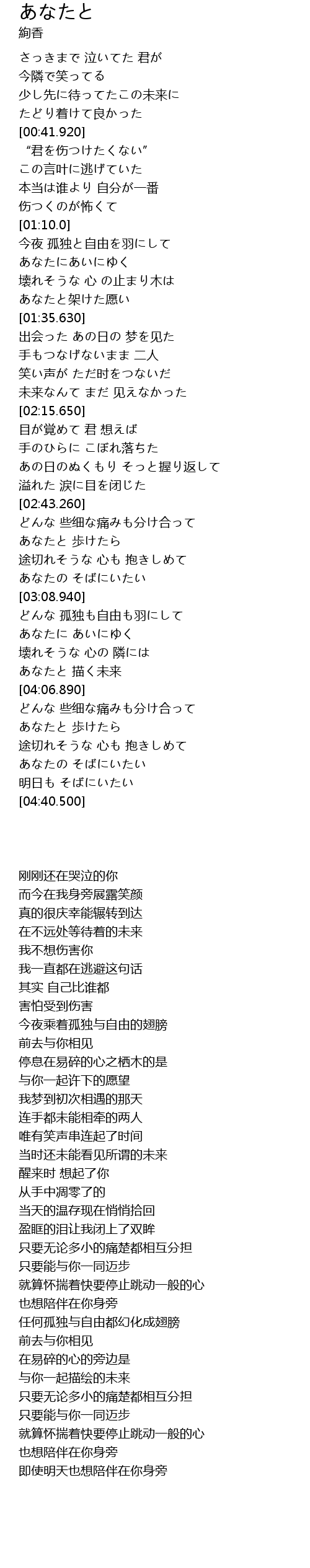 | [03:40.590] | どんな 孤独も自由も羽にして |