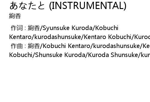 | [00:00.000] | 作曲 : 絢香/Kobuchi Kentaro/kurodashunsuke/Kentaro Kobuchi/Shunsuke Kuroda/Kuroda Shunsuke/kurodasyunsuke |