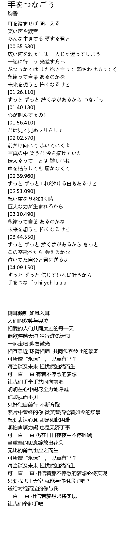 | [04:18.170] | 让我们牵起手吧 |