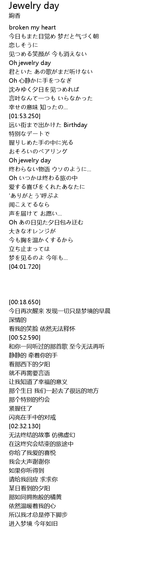 | [03:23.50] | Oh ri jian xi ri bao yu |