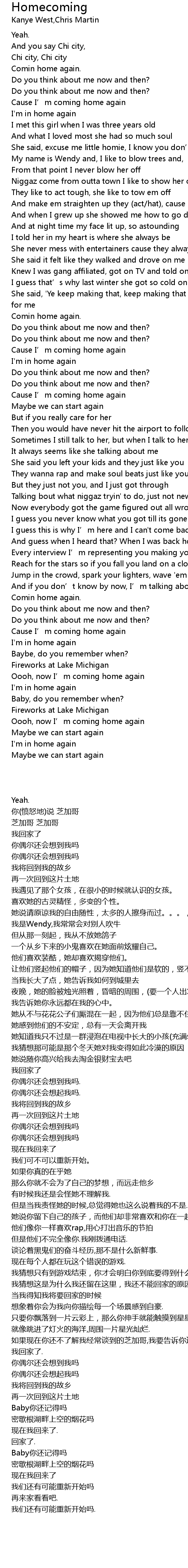 | 歌曲 | Homecoming |