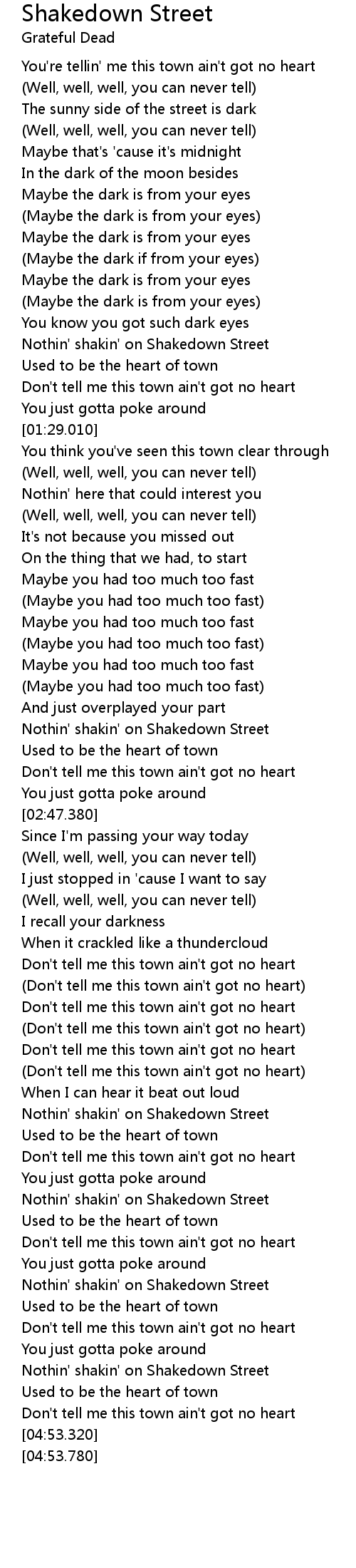 Nothin' shakin' on Shakedown Street |