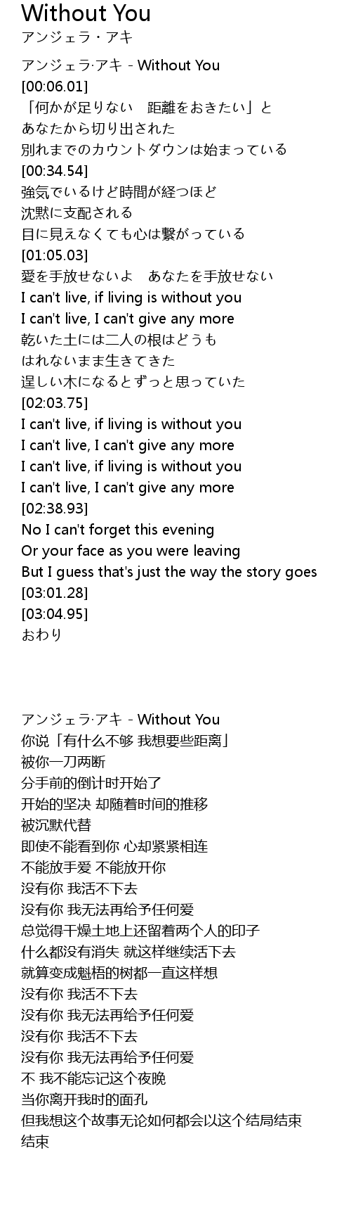 | [00:00.00] | アンジェラ·アキ - Without You |