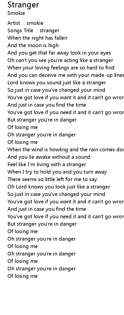 | [03:17.51] | Oh stranger you're in danger |