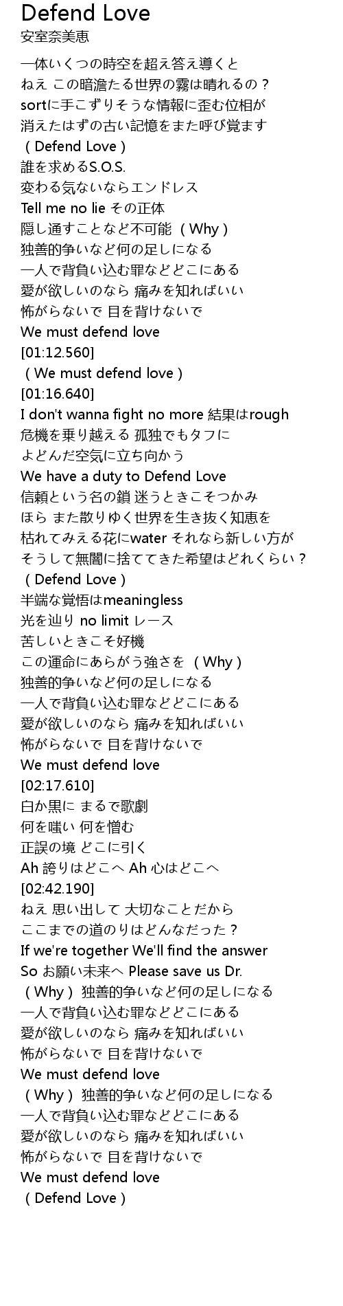| [03:01.290] | So お願い未来へ Please save us Dr. |