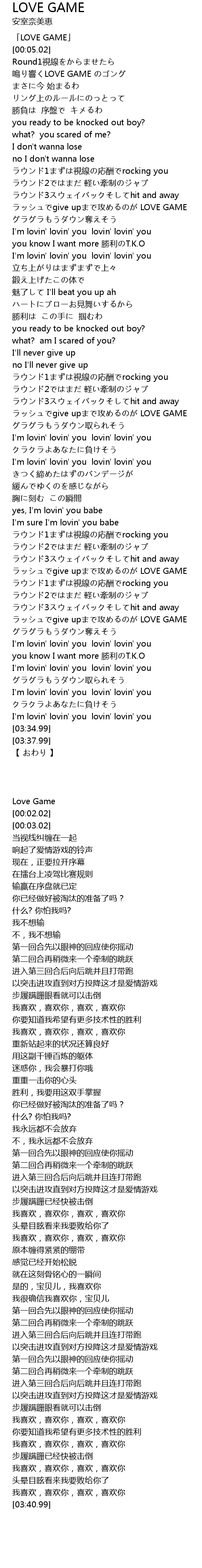 | [02:58.60] | ラッシュでgive upまで攻めるのが LOVE GAME |