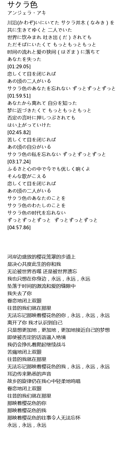 | [01:43.17] | サクラ色のあなたを忘れない ずっとずっとずっと |