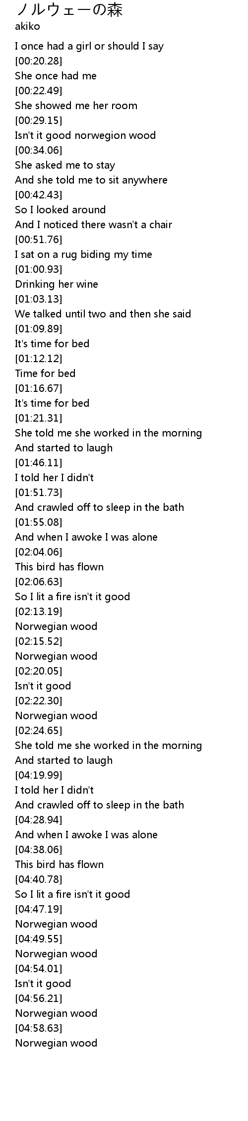 Isn't it good norwegion wood |