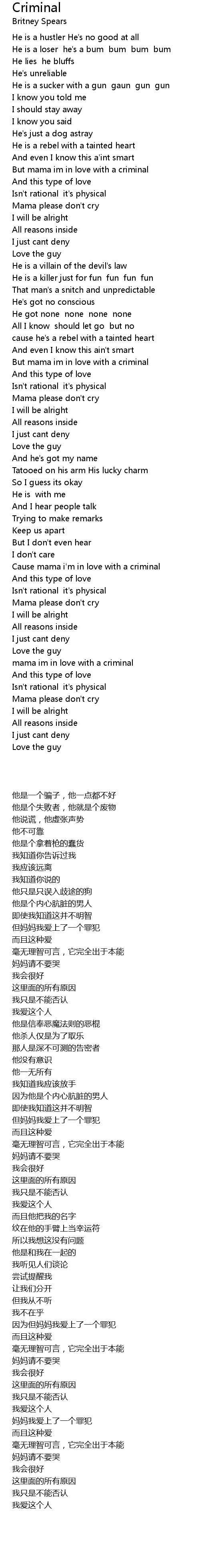 But mama im in love with a criminal |