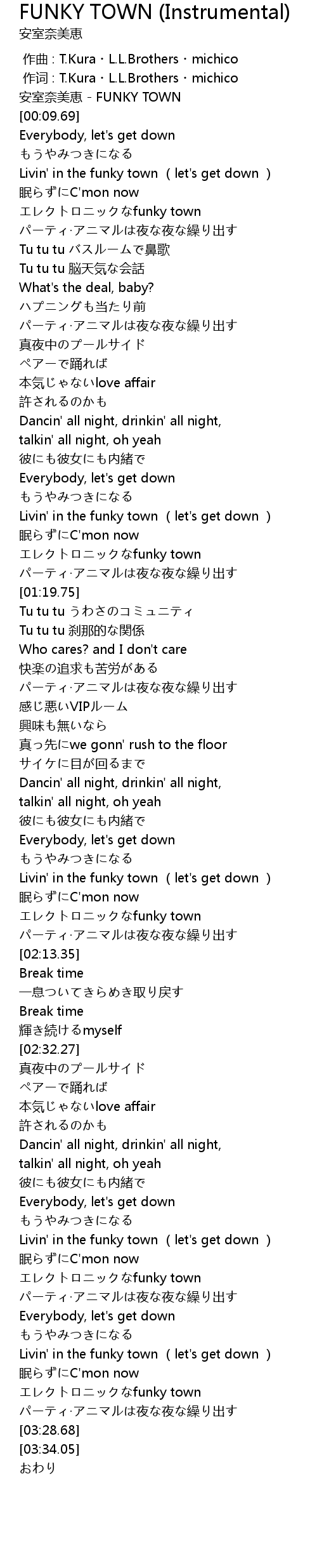| [00:00.00] | 安室奈美恵 - FUNKY TOWN |