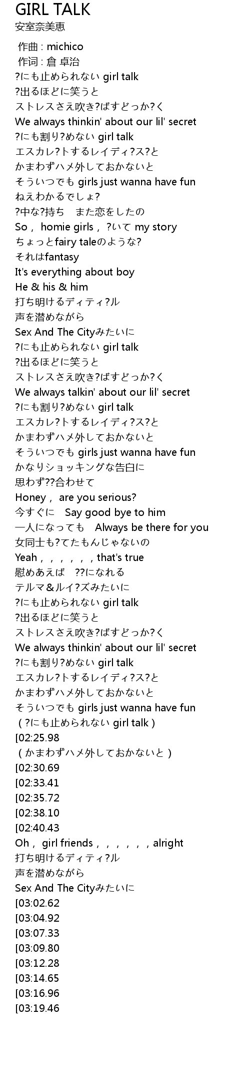 | [03:31.86][03:12.28] | ? ge? girl talk |