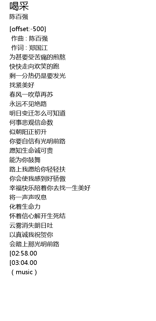 | [00:00.00] | zuò qǔ : chén bǎi qiáng |