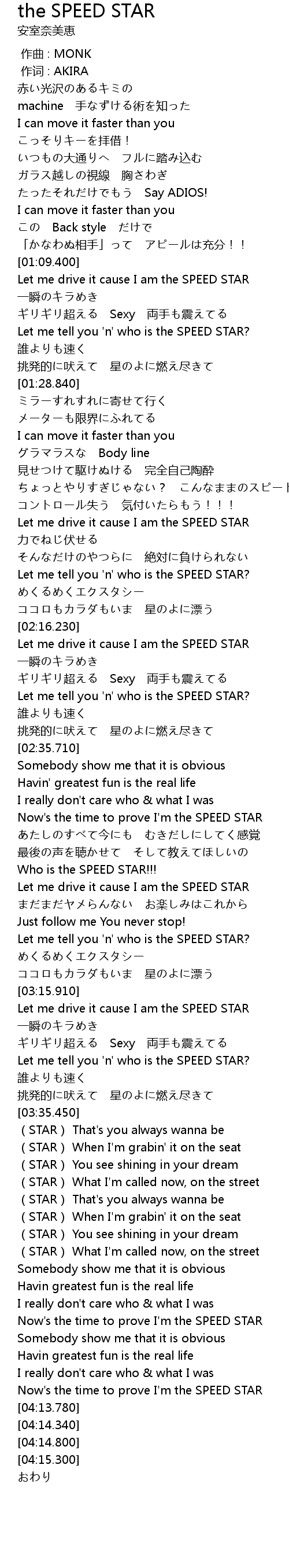 | [04:11.280] | Now's the time to prove I'm the SPEED STAR |