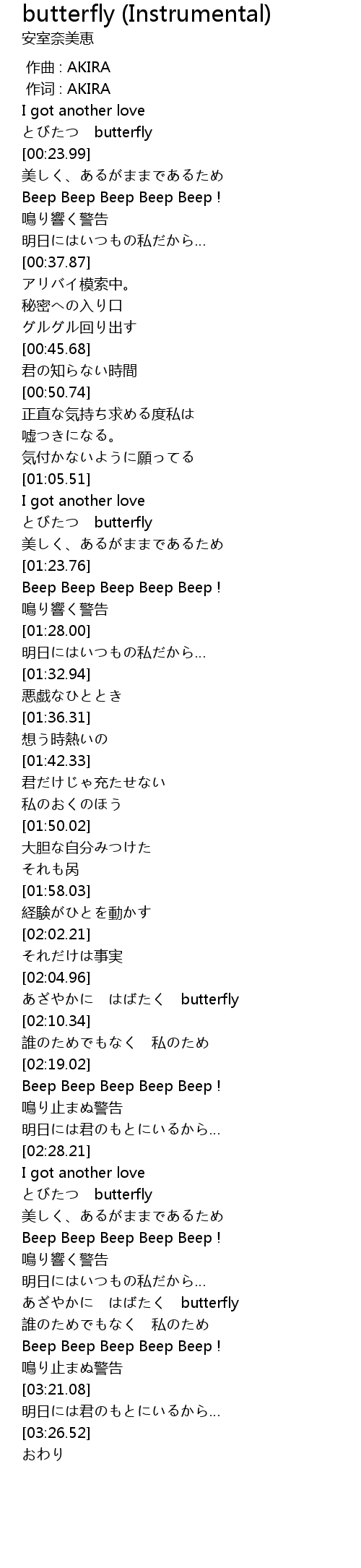 | 歌曲 | butterfly (Instrumental) |