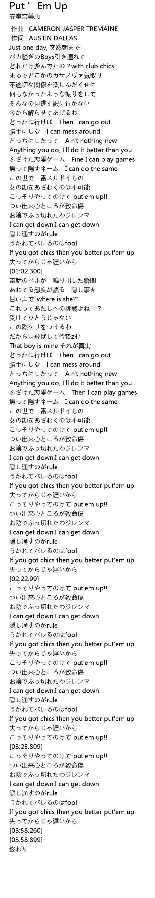 | [03:42.299] | こっそりやってのけて put'em up!! |
