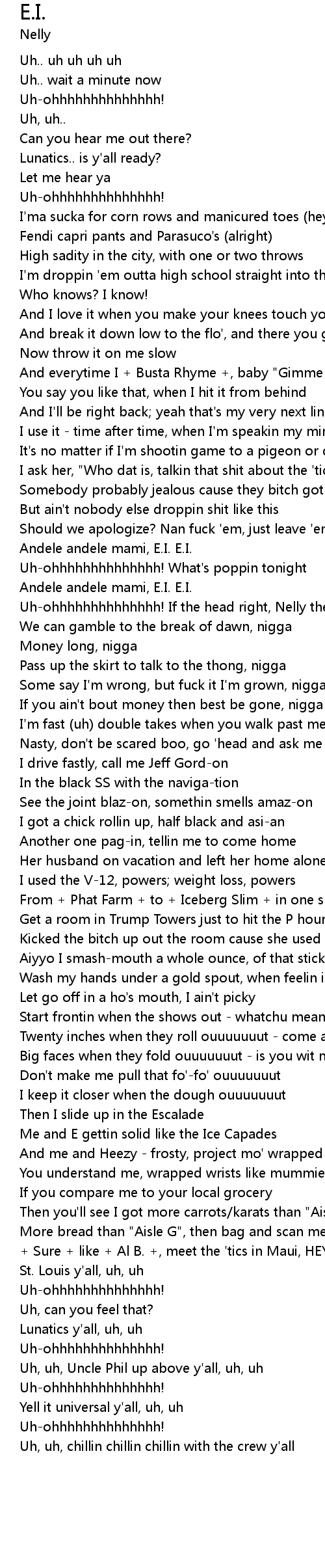 Uh-ohhhhhhhhhhhhhh! If the head right, Nelly there ery'night |