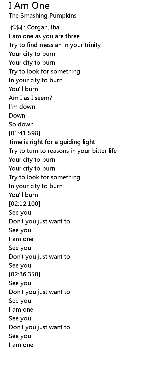 | [00:59.569] | I am one as you are three |