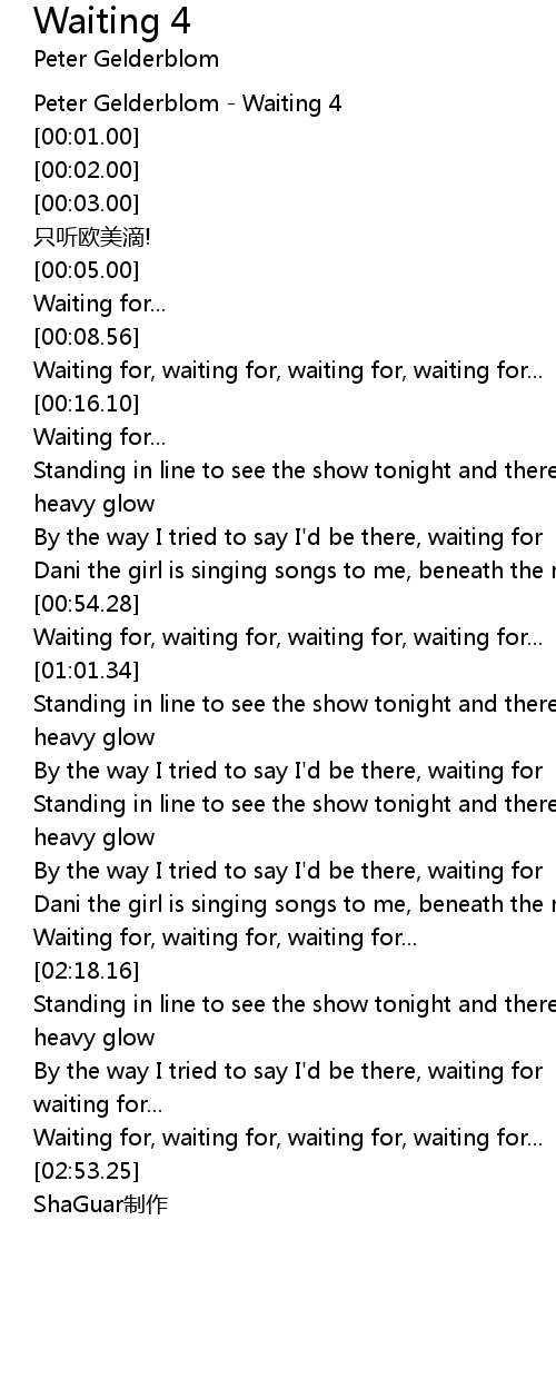 | [02:42.79] | Waiting for, waiting for, waiting for, waiting for... |