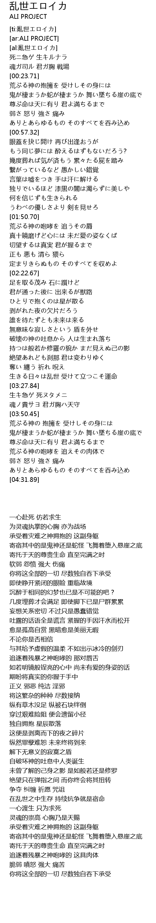 | [03:21.26] | 在乱世之中生存 持续抗争就是宿命 |