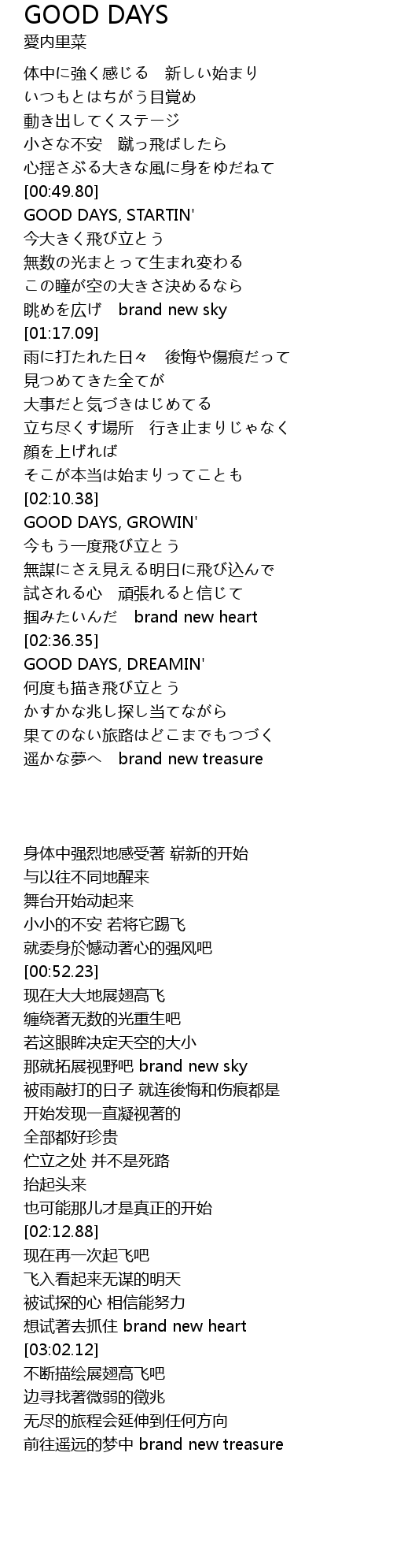 | [00:52.23] | GOOD DAYS, STARTIN' |