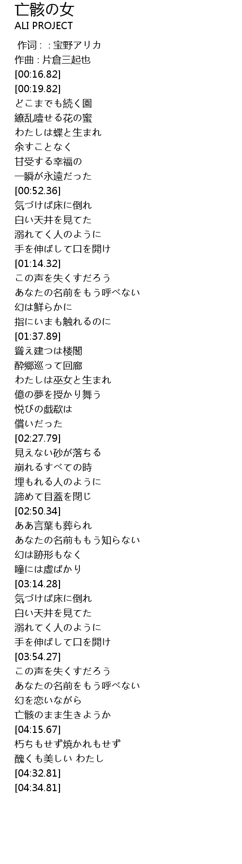 | [04:16.43] | 朽ちもせず焼かれもせず |