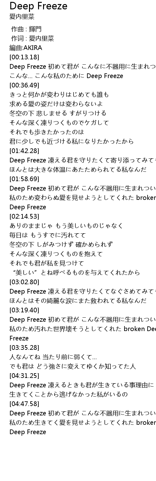 | [00:21.09] | Deep Freeze 初めて君が こんなに不器用に生まれついた |