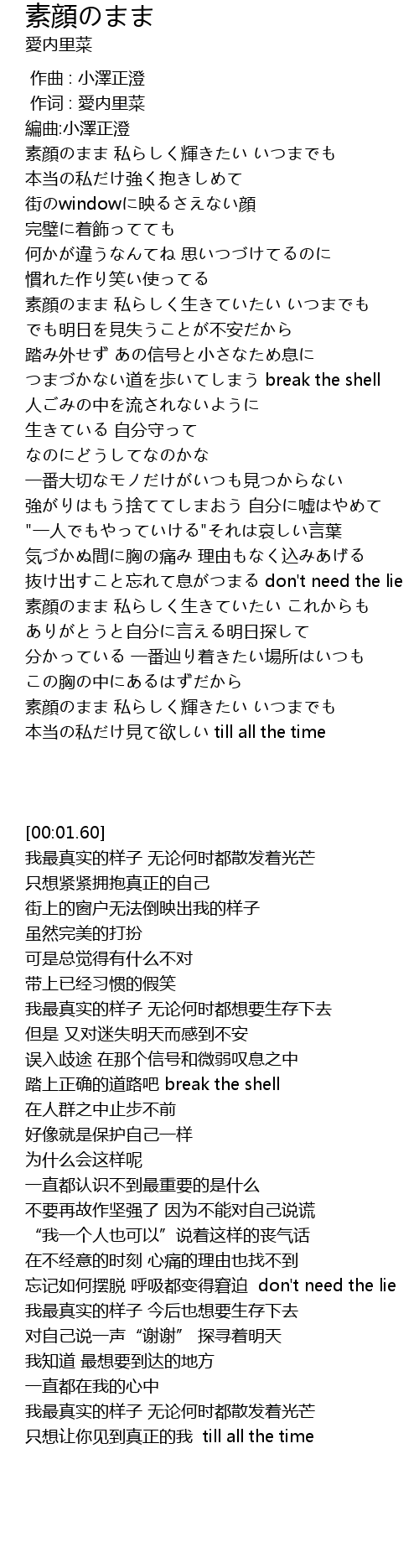 | [01:19.31] | 素顔のまま 私らしく生きていたい いつまでも |