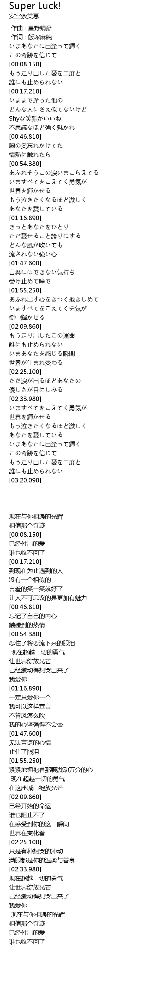 | 歌曲 | Super Luck! |