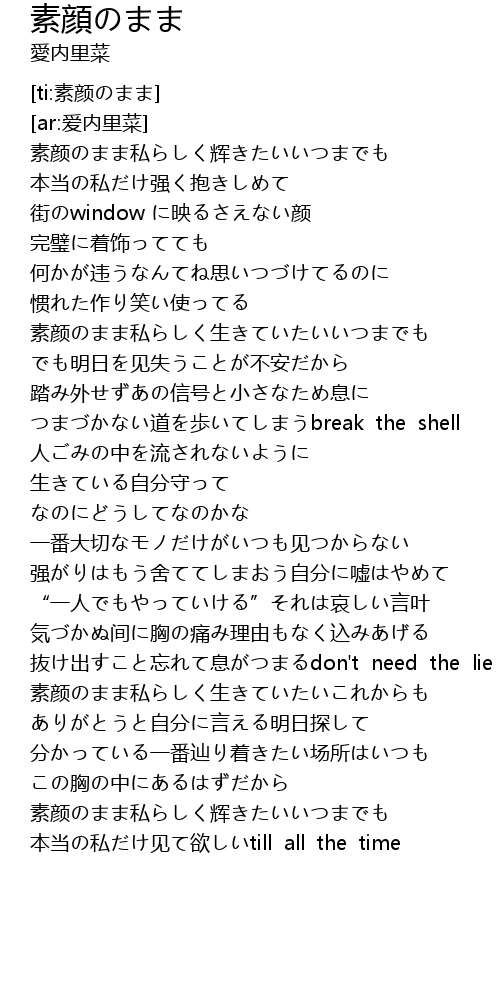 | [03:29.54] | 素颜のまま私らしく生きていたいこれからも |