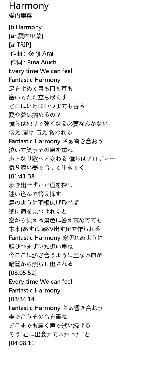 | [03:39.62] | Fantastic Harmony さぁ響き合おう |
