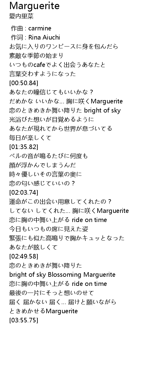 | [02:13.24] | してない してくれた… 胸に咲くMarguerite |