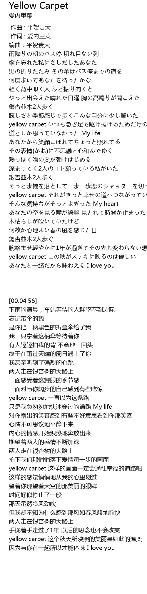 | [03:43.42] | yellow carpet この秋がステキに映るのは優しい |