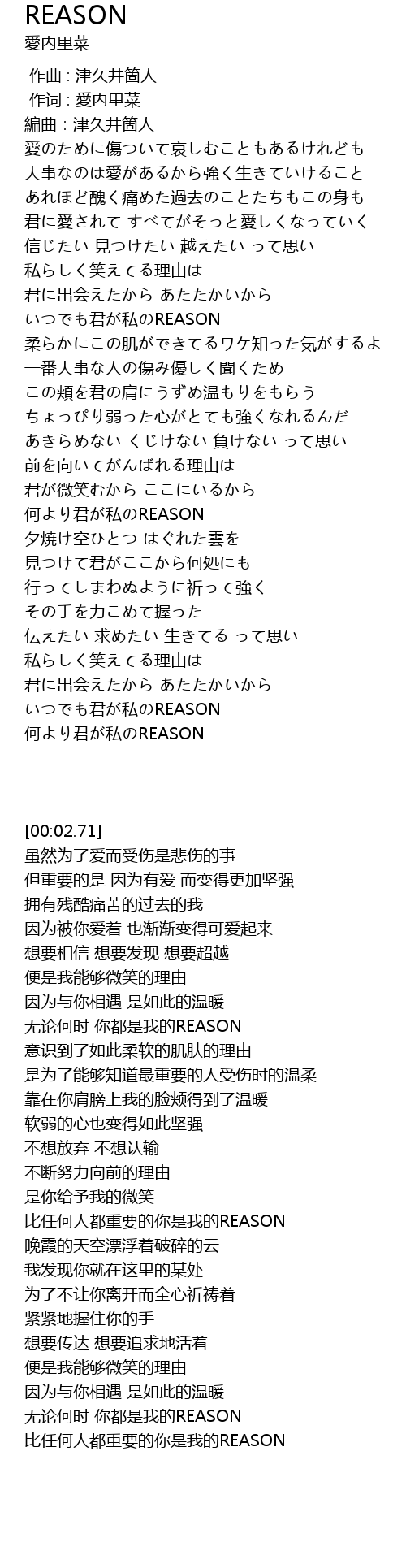 | [03:39.31] | 无论何时 你都是我的REASON |