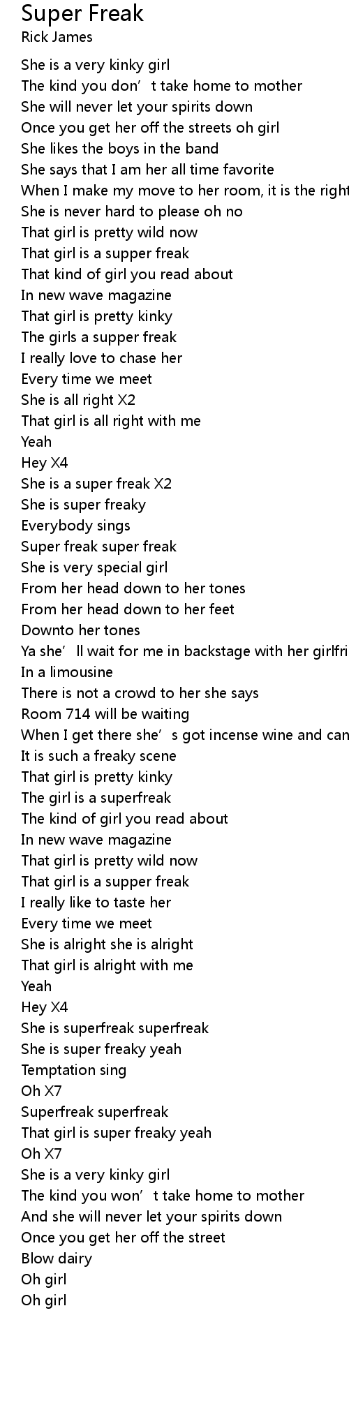| [02:26.000] | She is superfreak superfreak |
