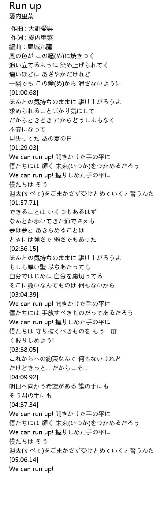 | [03:22.96] | We can run up! 握りしめた手の平に |