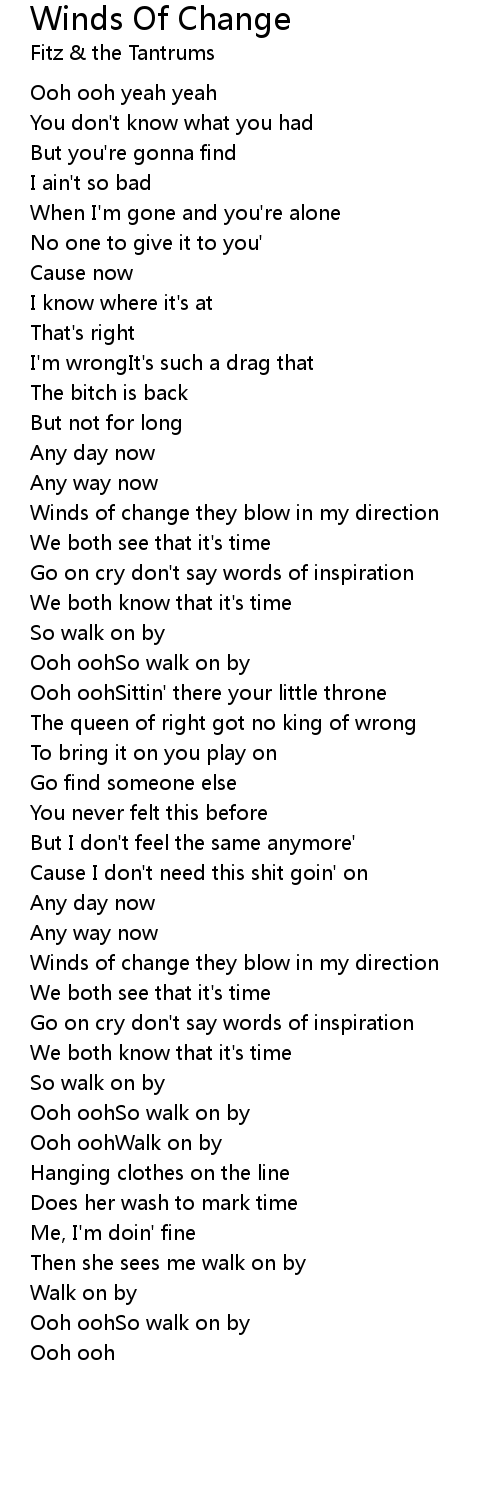 Winds of change they blow in my direction |