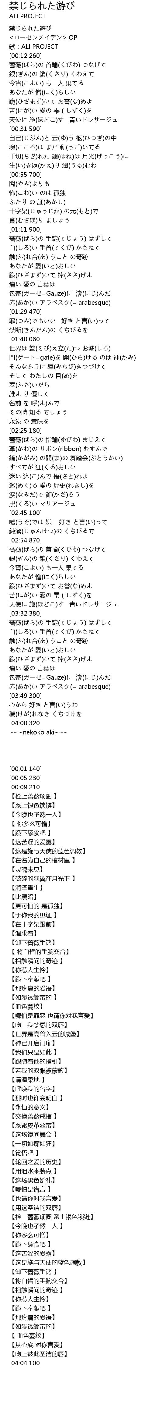 | [03:46.200] | 赤(あか)い アラベスク(= arabesque) |