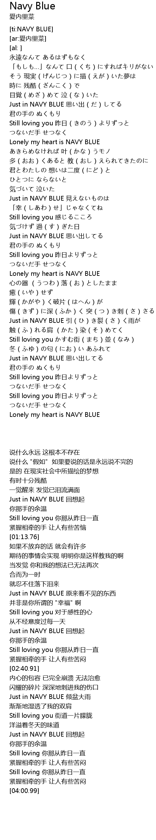 | [01:13.76] | Lonely my heart is NAVY BLUE |