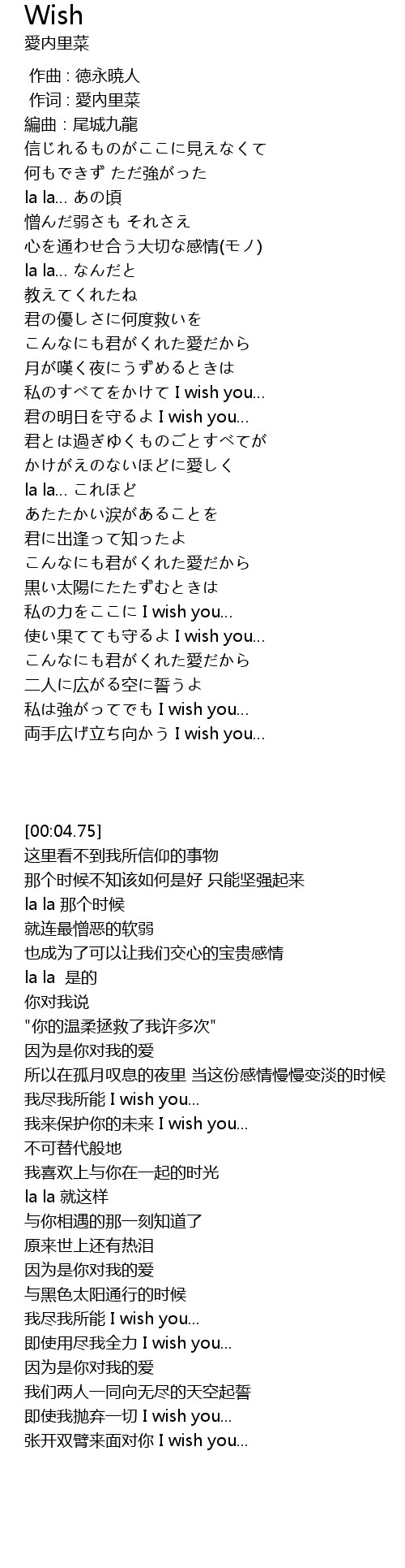 | [03:34.87] | 私は強がってでも I wish you… |