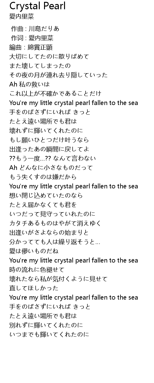 | [03:24.96] | You're my little crystal pearl fallen to the sea |